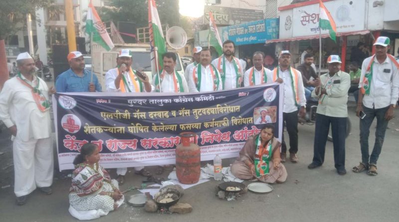 पुरंदर तालुका काँग्रेस पक्षाच्या वतीने जेजुरी नगरपालिका चौकात गॅस दरवाढ, गॅस वितरणातील ढिसाळपणा, राज्य सरकारने शेतकरी बांधवाना दिलेली फसवी कर्ज माफी… अशा खोट्या आश्वासनांचा चुलीवर स्वयंपाक करुन निषेध करण्यात आला.